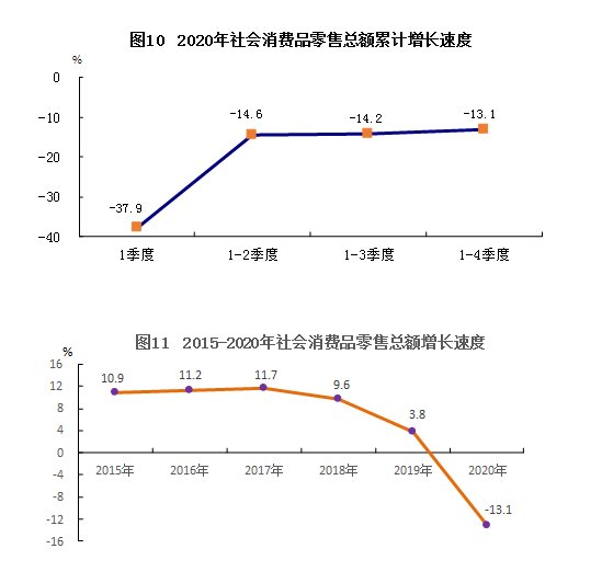 全年实现社会消费品零售总额下降13.1%,扣除价格因素,实际下降10.2%。按经营地统计,城镇消费品零售额下降13.2%;乡村消费品零售额下降11.0%。