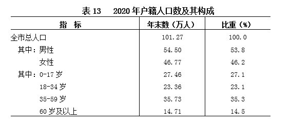 据公安部门统计,年末全市户籍人口101.27万人,比上年末增加0.90万人。