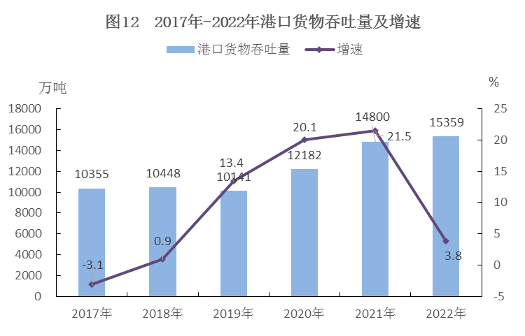 注:港口货物吞吐量2019-2021年按新口径统计,以取得港口经营许可证的企业为统计对象。