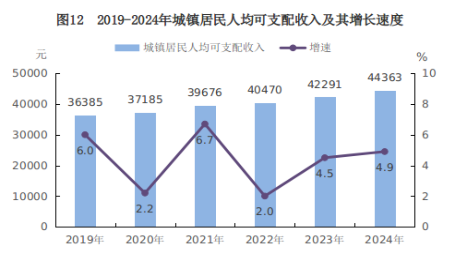 全年城镇居民人均可支配收入44363元,比上年增长4.9%,扣除价格因素,实际增长5.1%;农村居民人均可支配收入22855元,增长6.5%,扣除价格因素,实际增长6.7%。城镇居民人均生活消费支出30653元,增长8.4%,扣除价格因素,实际增长8.6%;农村居民人均生活消费支出16567元,增长11.5%,扣除价格因素,实际增长11.7%。