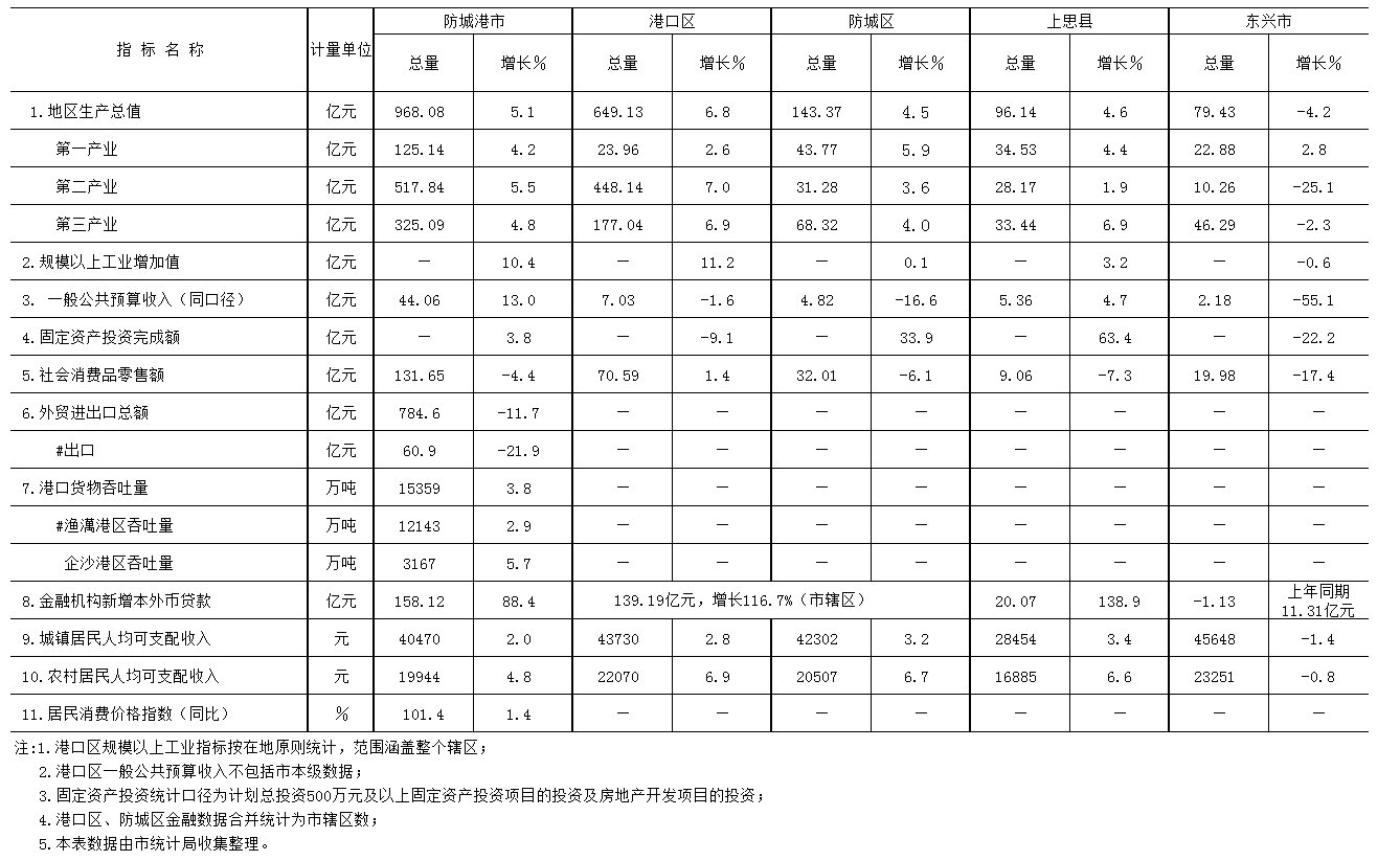 2022年防城港市及各县(市、区)主要经济指标完成情况表