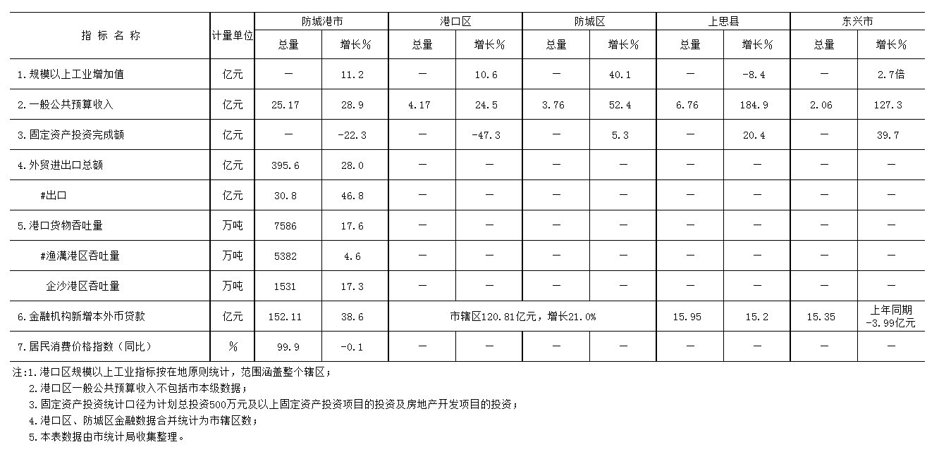 2023年1-5月防城港市及各县(市、区)主要经济指标完成情况表