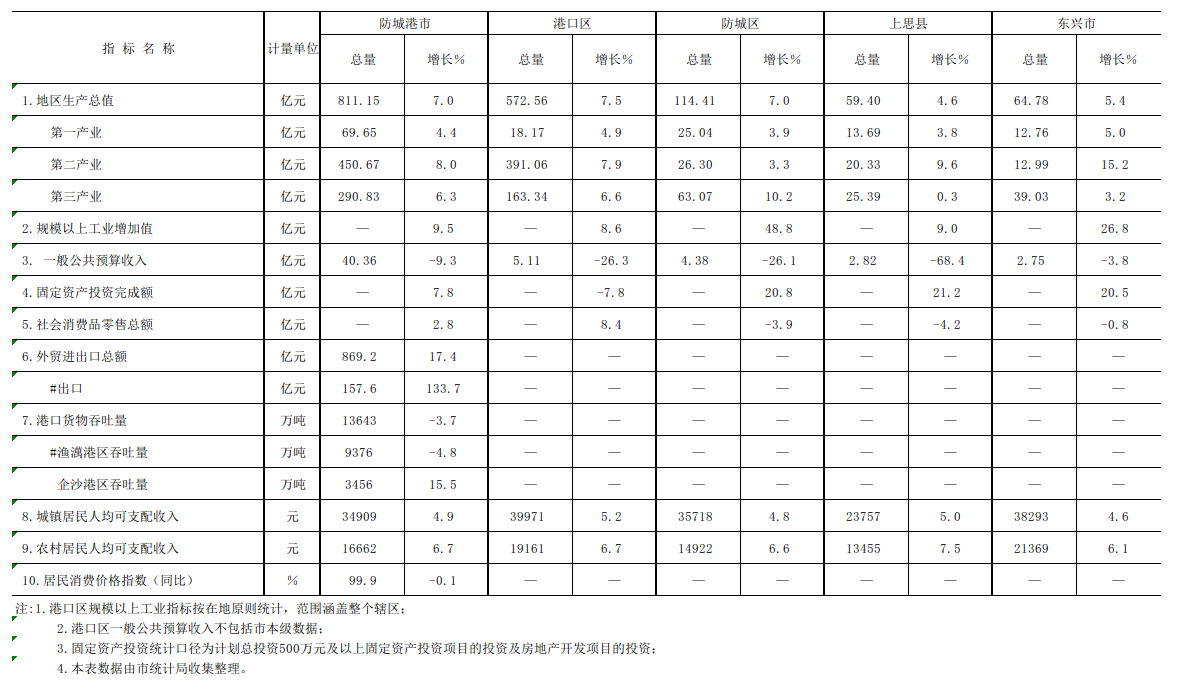 2024年前三季度防城港市及各县(市、区)主要经济指标完成情况表