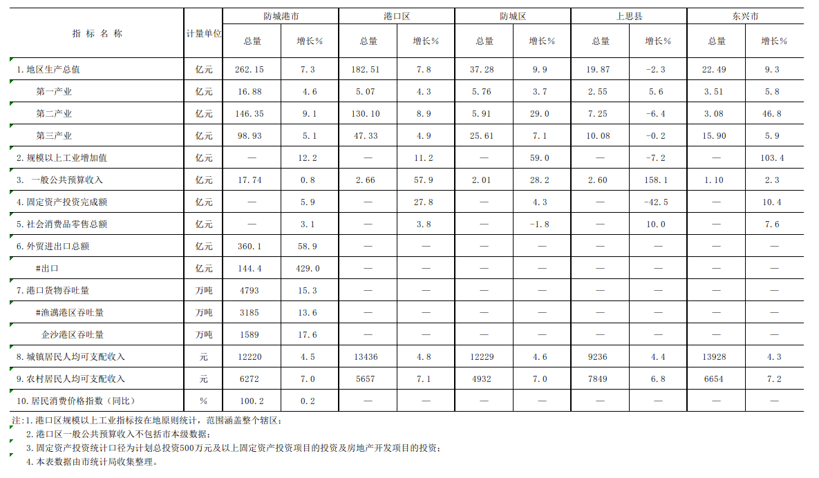 2025年一季度防城港市及各县(市、区)主要经济指标完成情况表
