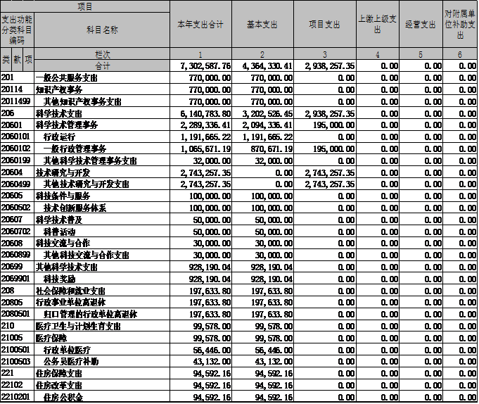 ①“科学技术管理事务”款:“行政运行”、 “一般行政管理事务”、“其它科学技术管理事务支出”三项;