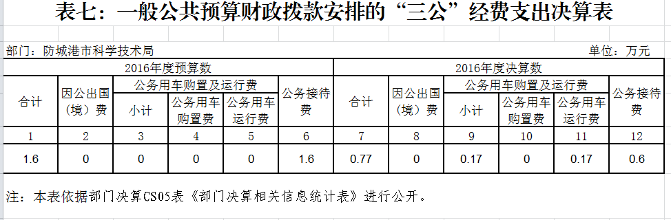 (三)公务接待费支出0.60万元。2016年市科技局使用公共预算财政拨款支出的国内公务接待6批次,30人次。