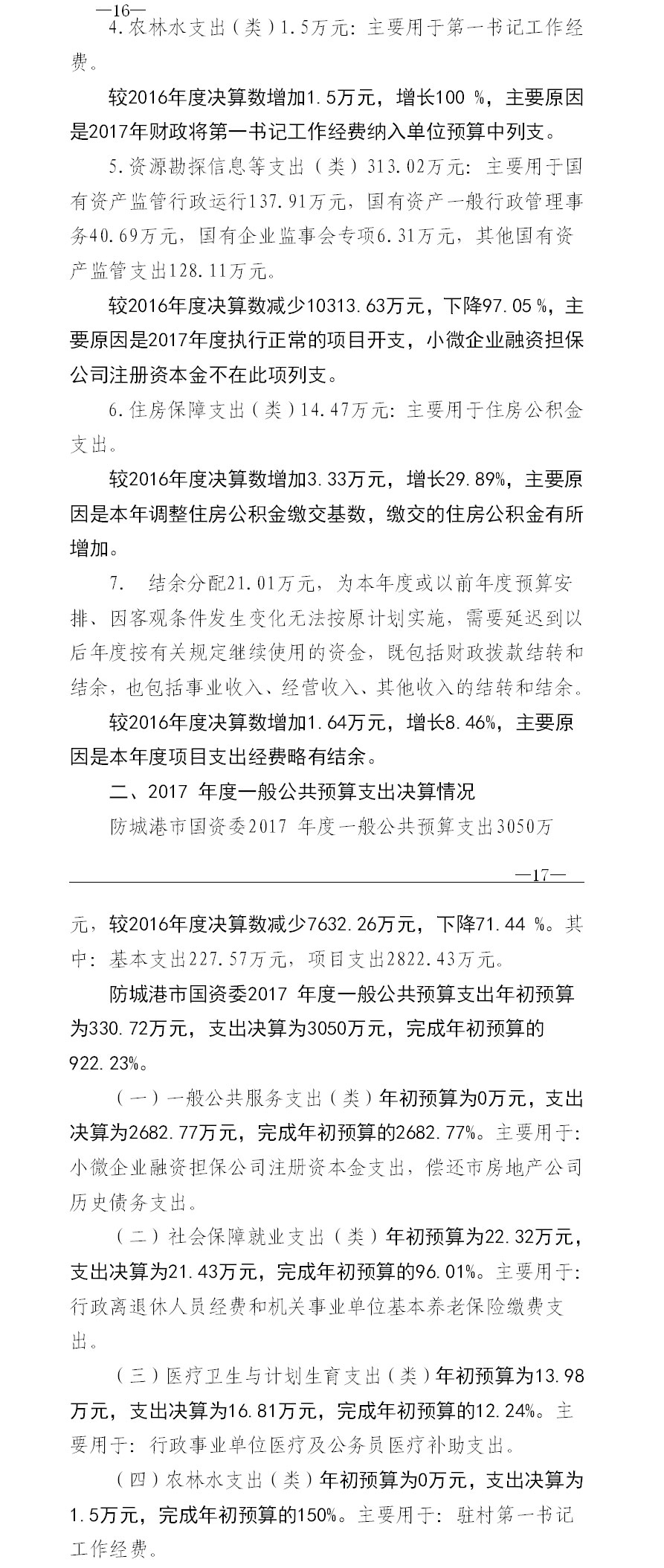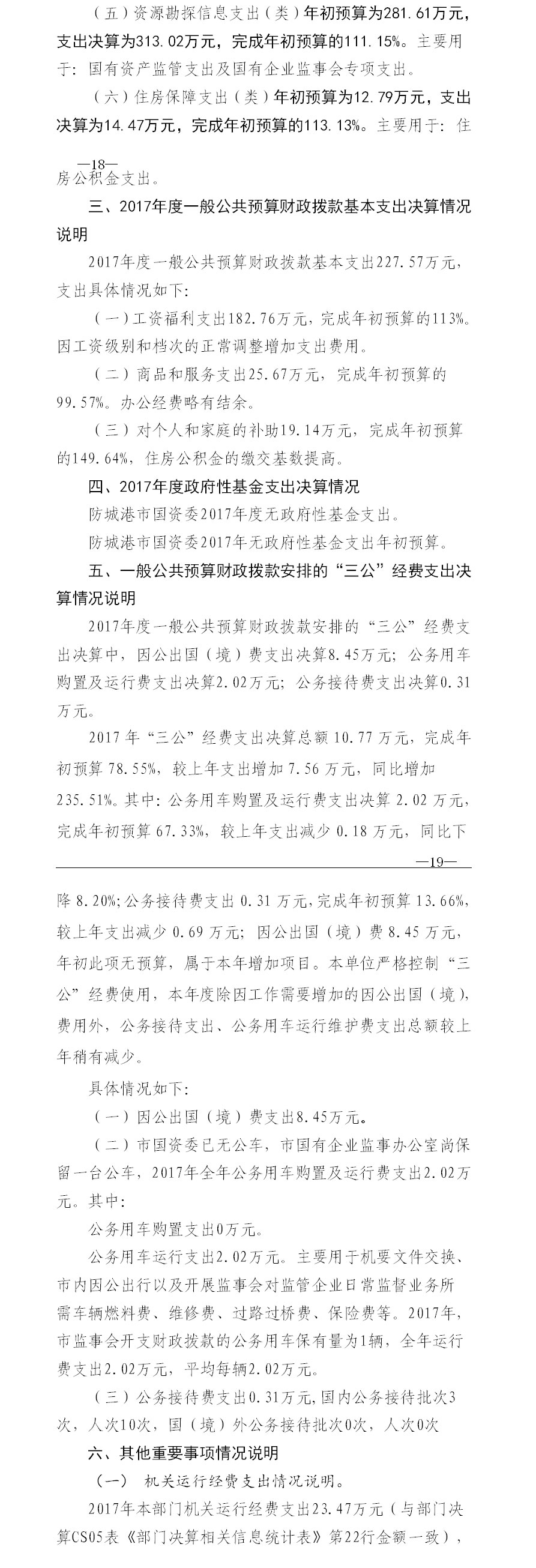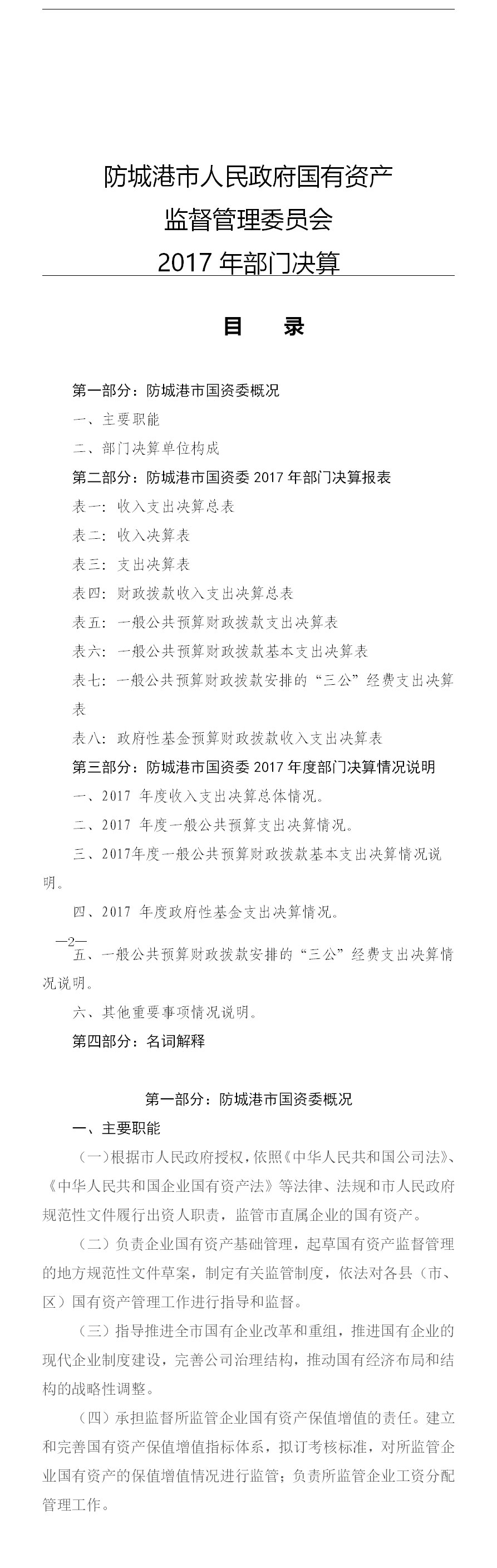 防城港市人民政府国有资产监督管理委员会2017年部门决算