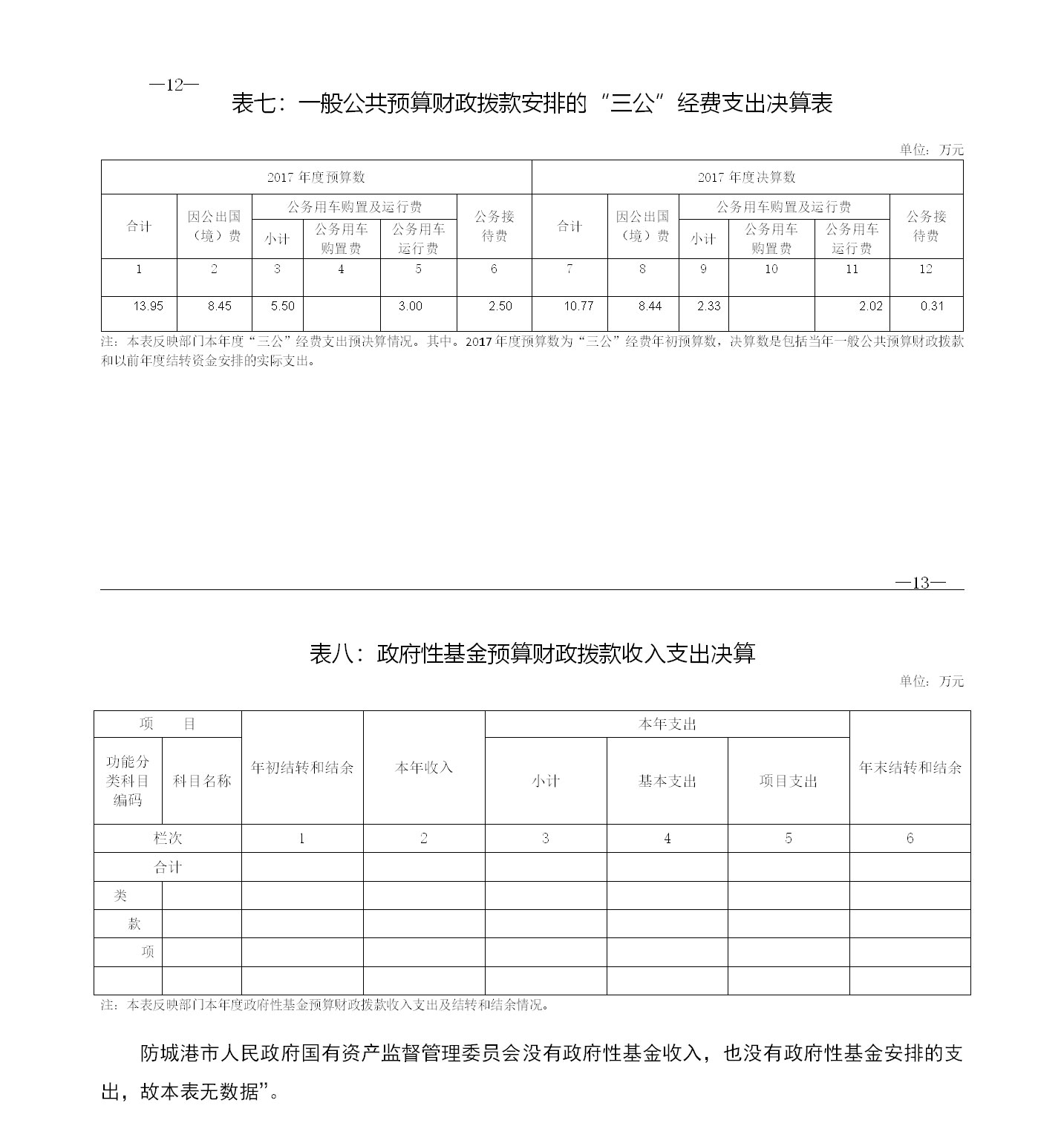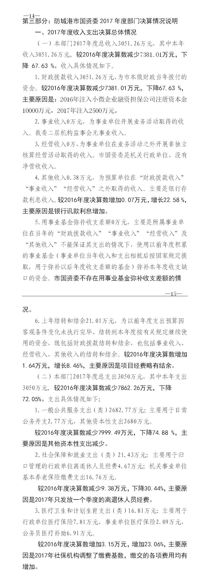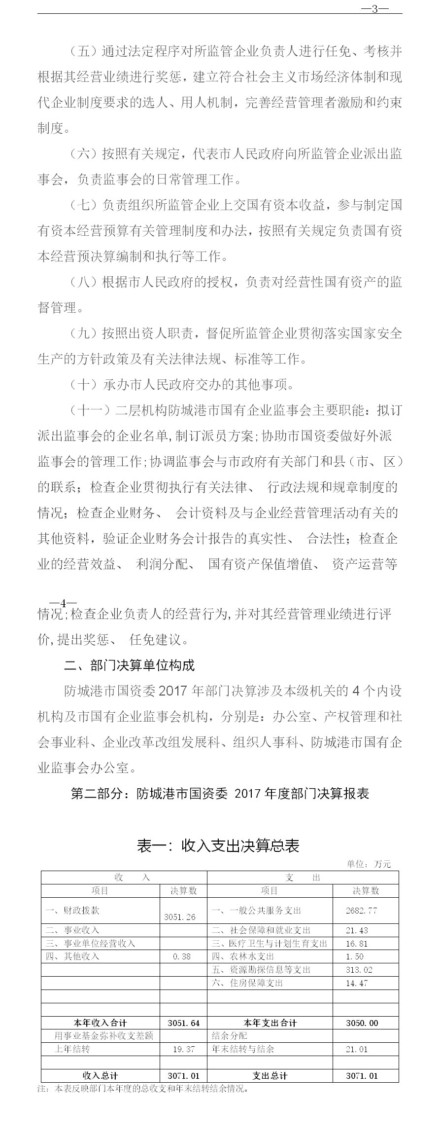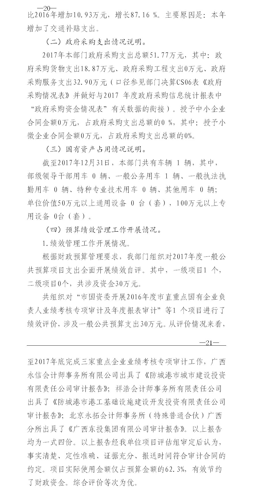 防城港市人民政府国有资产监督管理委员会2017年部门决算