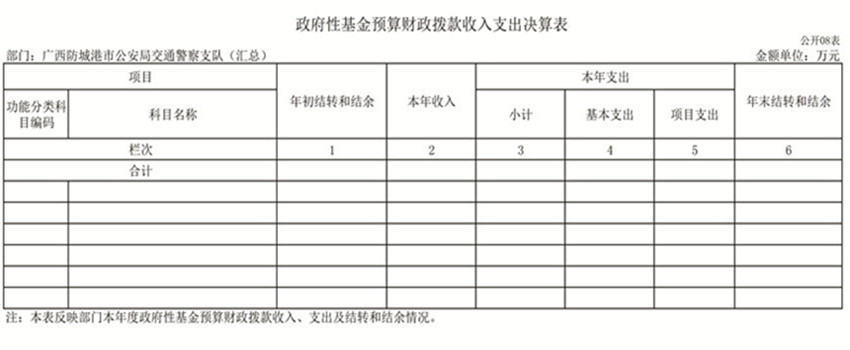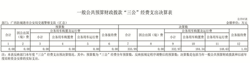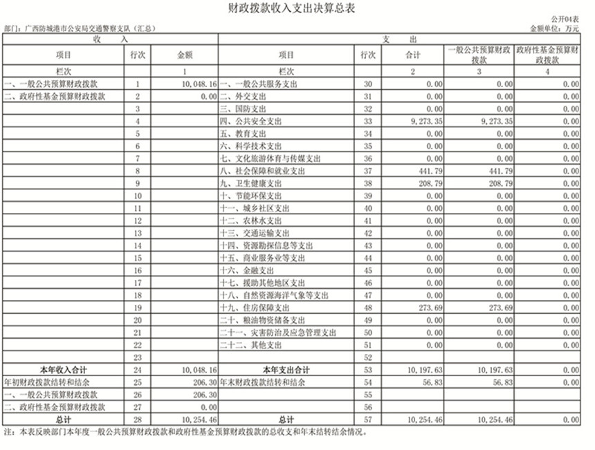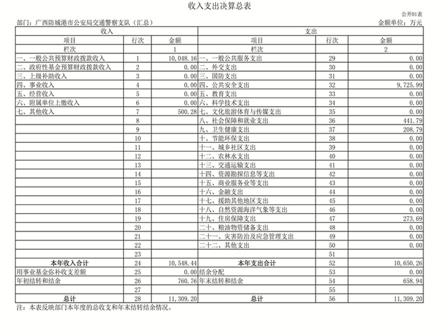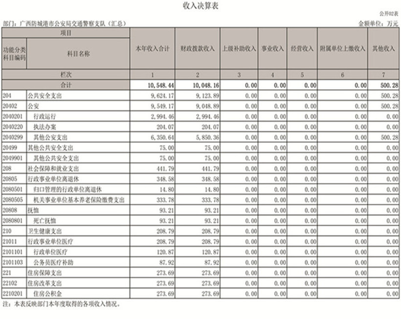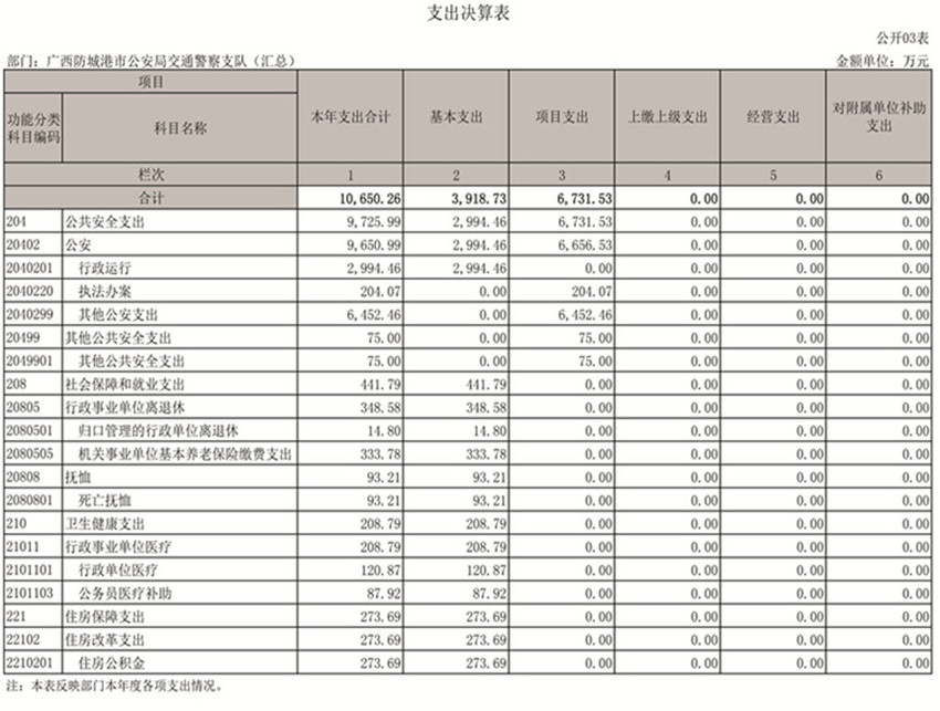 第二部分:防城港市公安局交通警察支队2019年部门决算报表