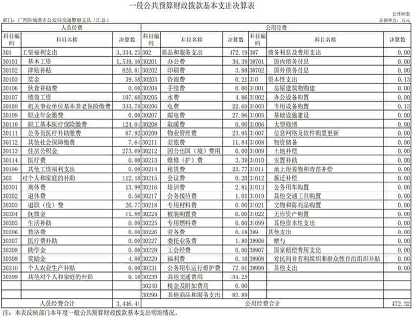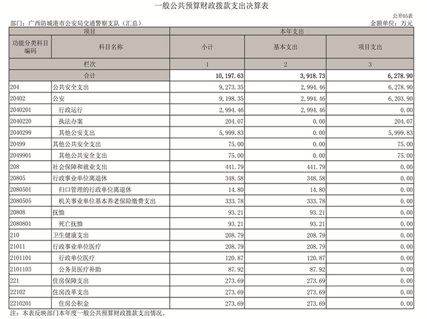 第二部分:防城港市公安局交通警察支队2019年度部门决算报表