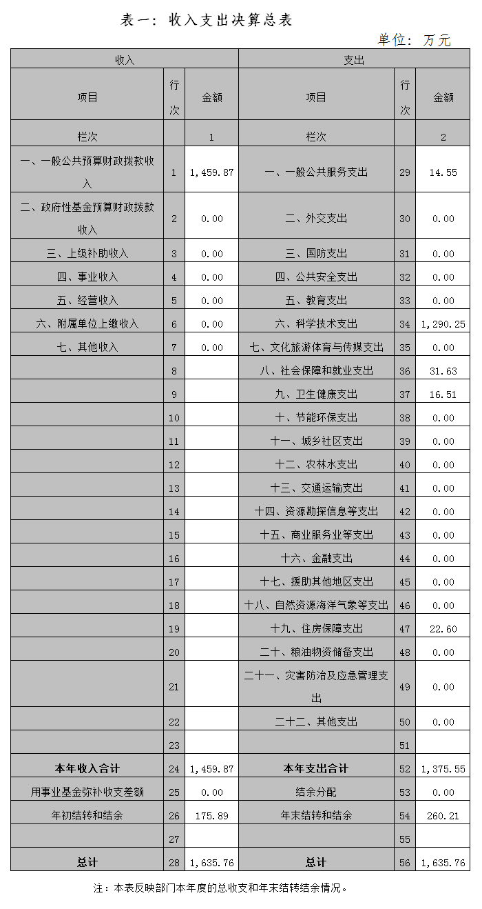 1.财政拨款收入1459.87万元,为市本级财政当年拨付的资金。较2018年度决算数增加144.1万元,增长10.95%,主要原因是财政增加了技术研究与开发经费。