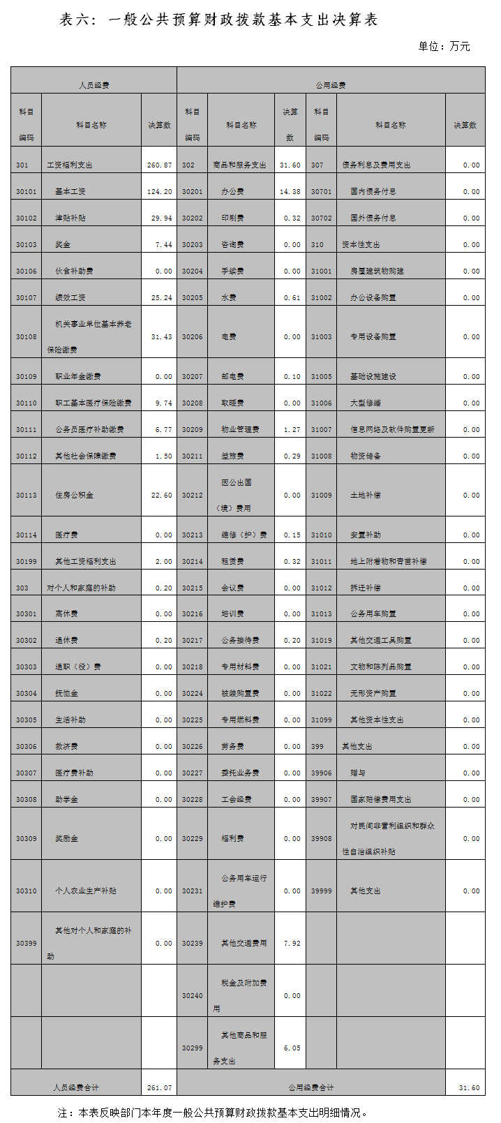 2019年度一般公共预算财政拨款基本支出292.66万元,支出具体情况如下: