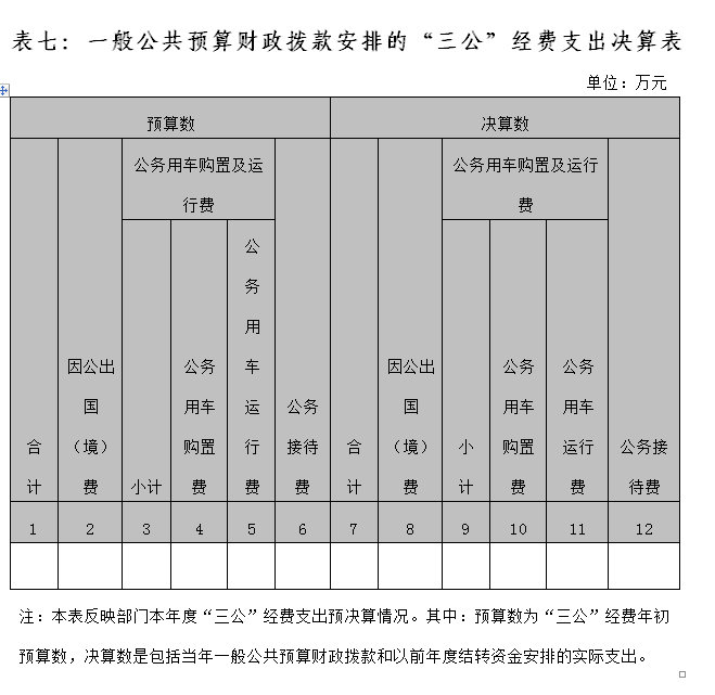 表七:一般公共预算财政拨款安排的“三公”经费支出决算表