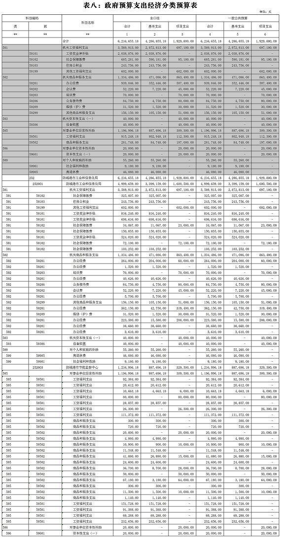 第二部分:防城港市工业和信息化局2020年部门预算报表