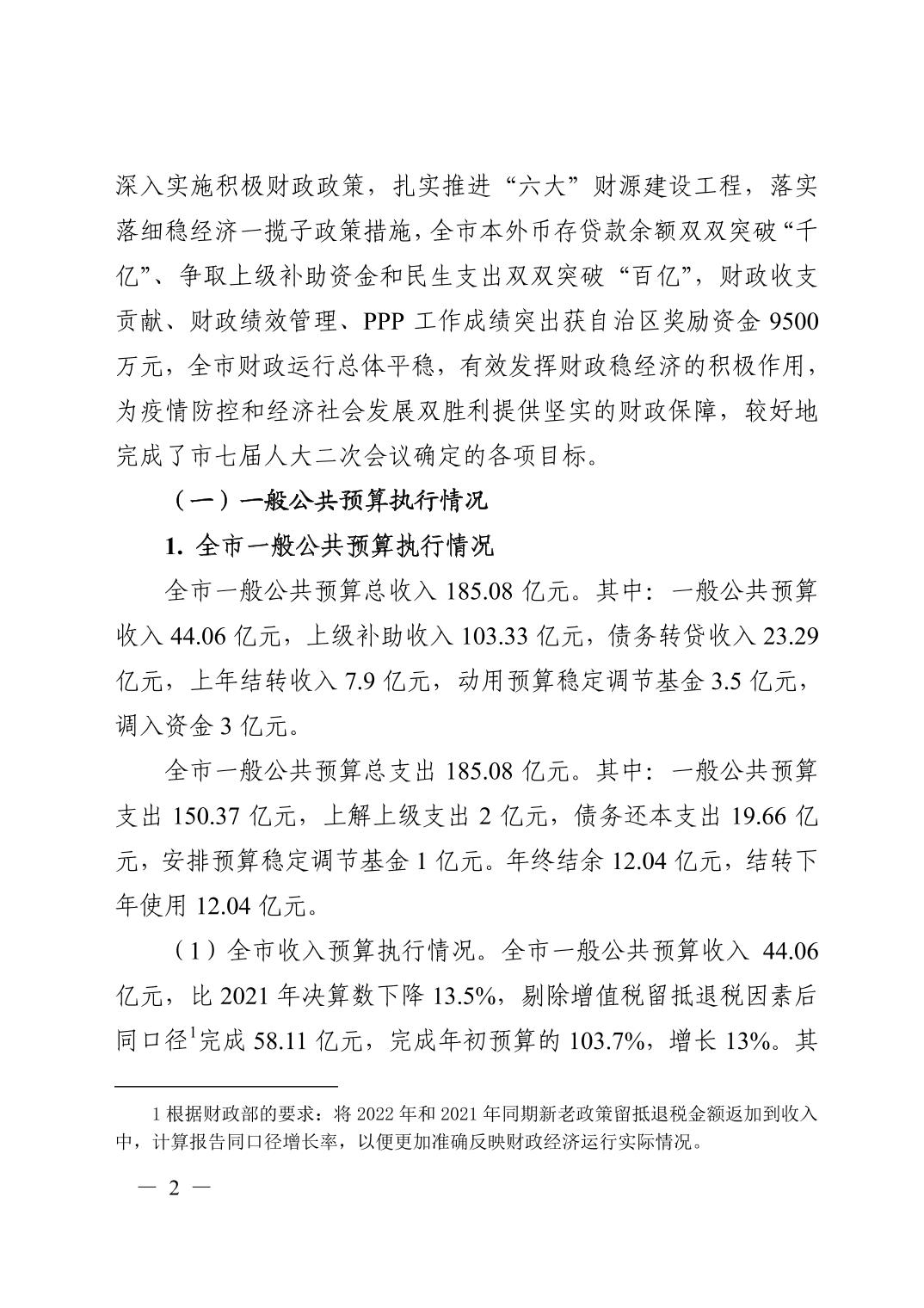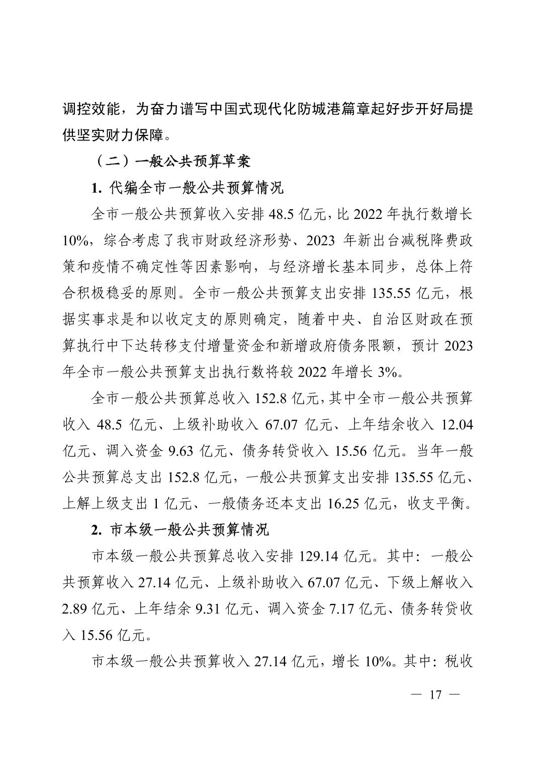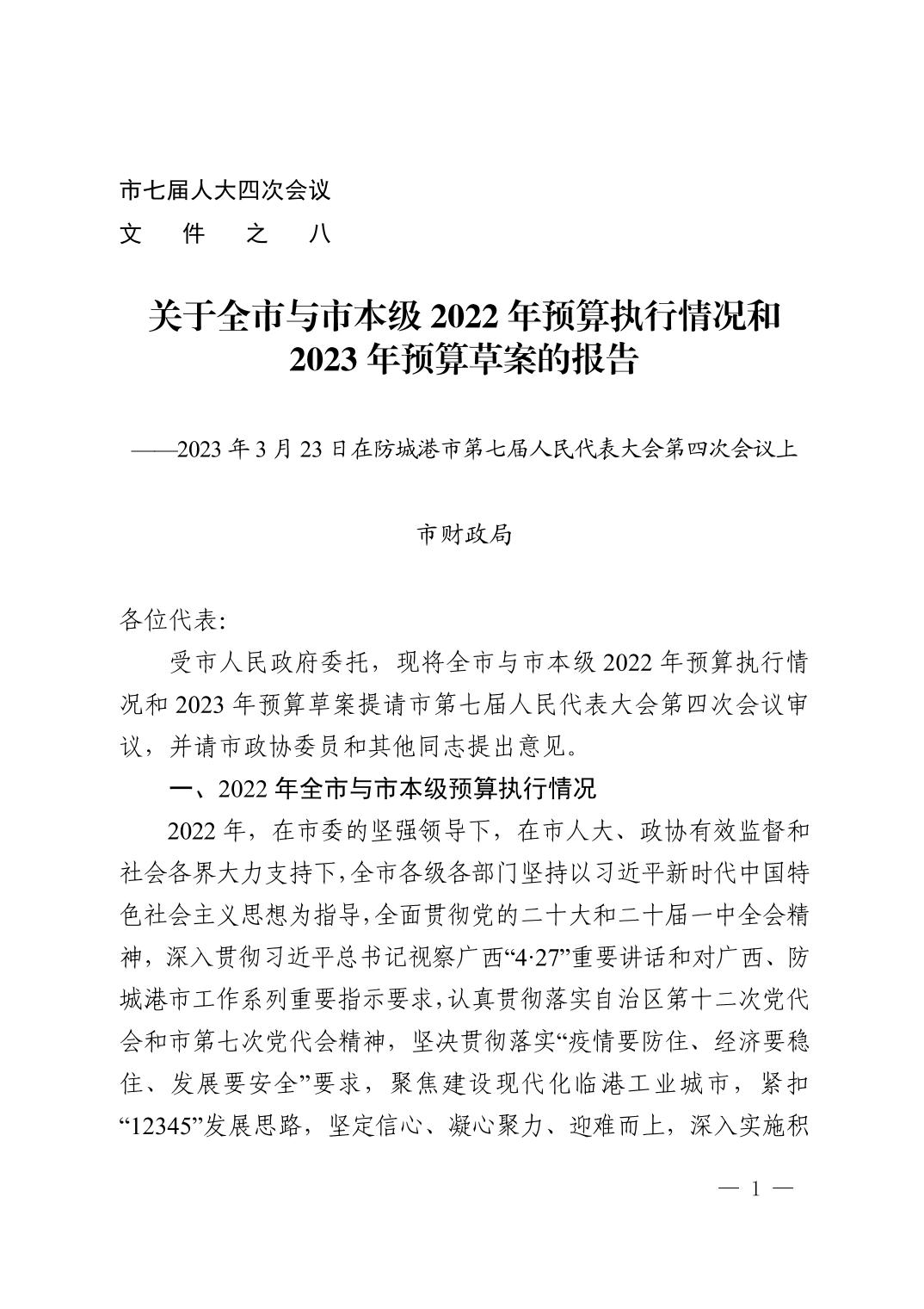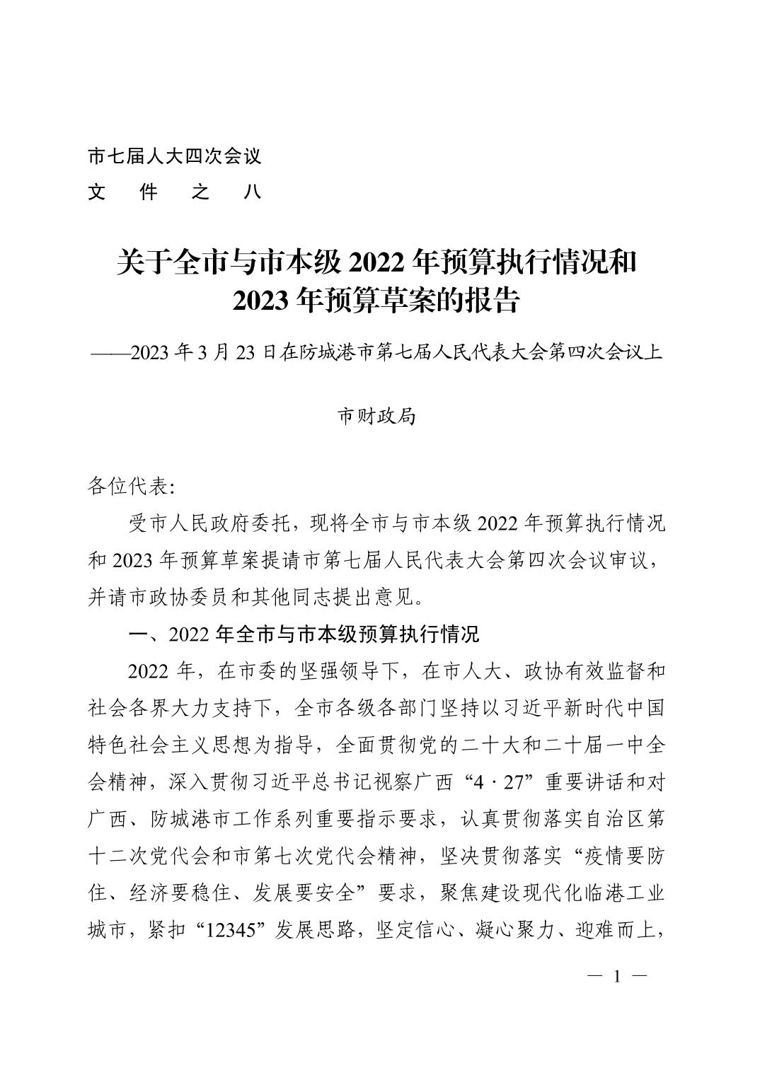 防城港市全市及市本级2022年预算执行情况和2023预算草案.pdf