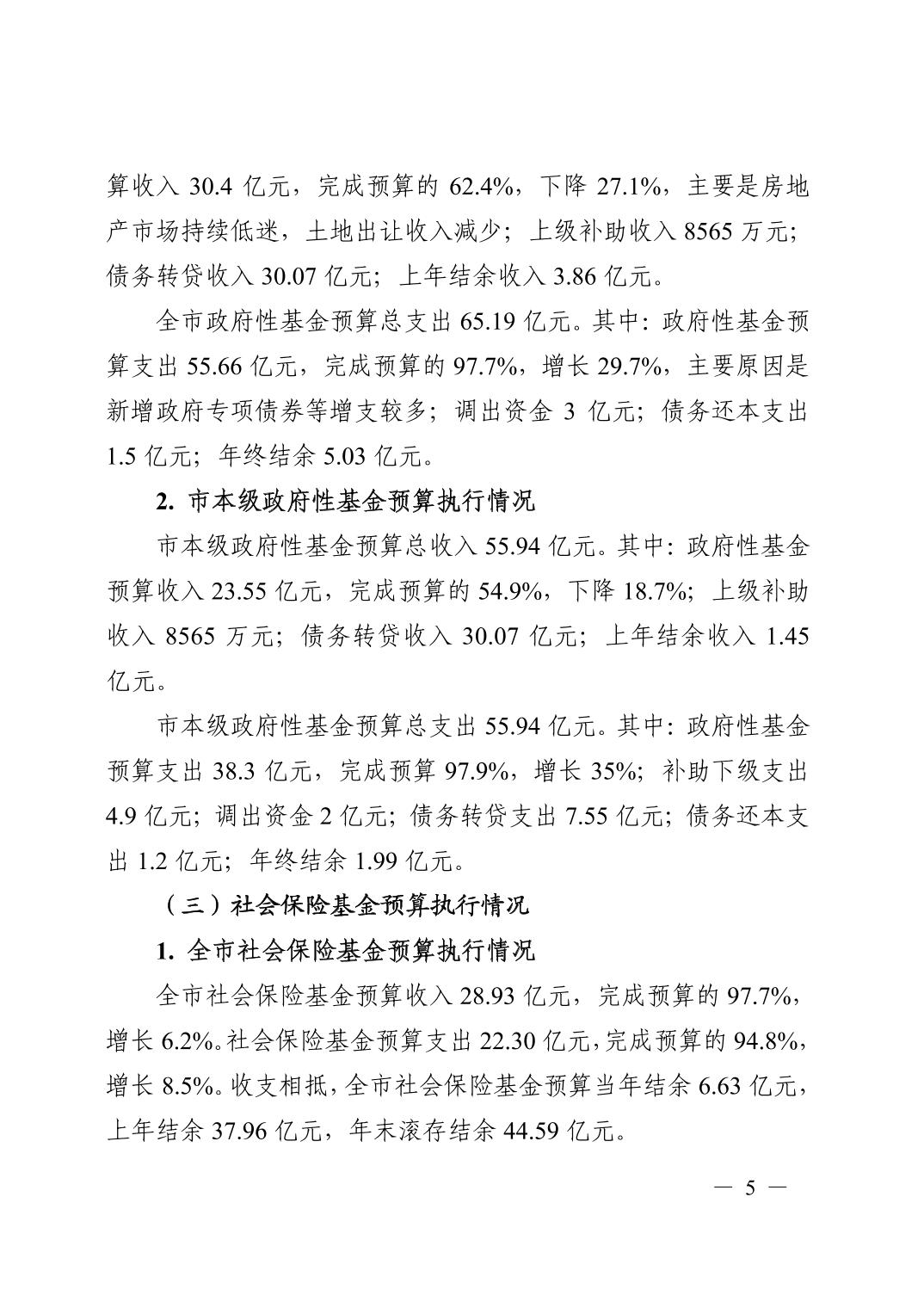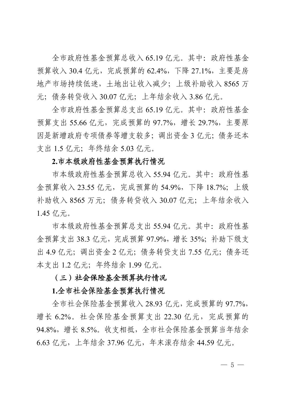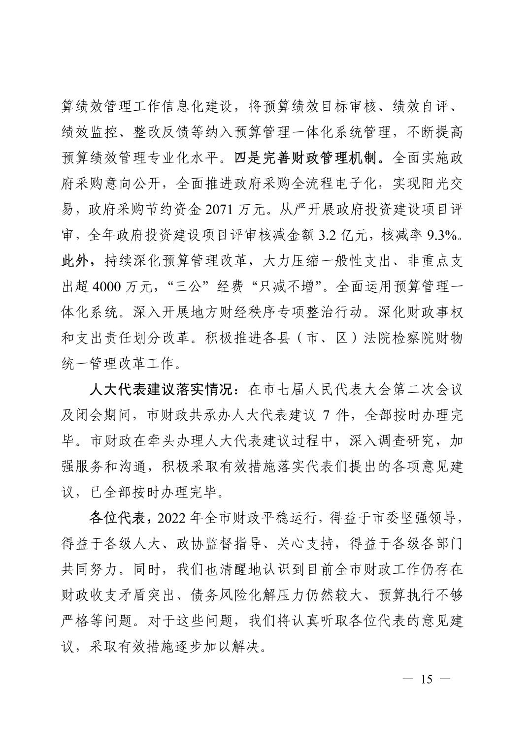 关于全市与市本级 2022 年预算执行情况和 2023 年预算草案的报告