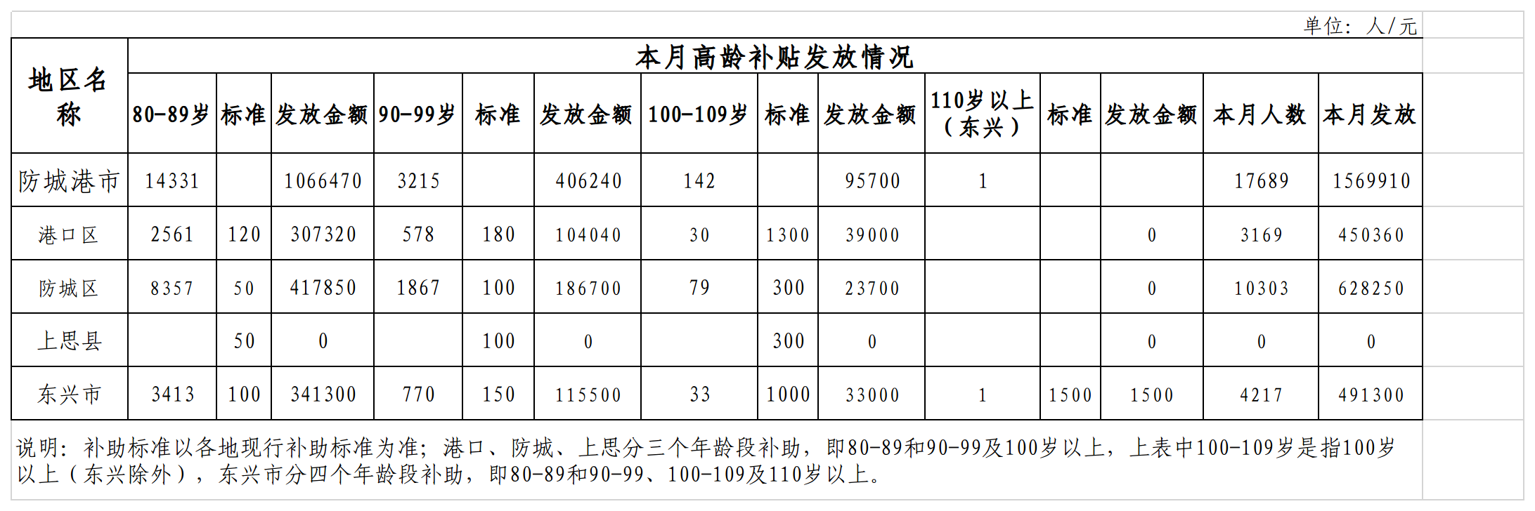 2025年7月高龄补贴发放情况统计表