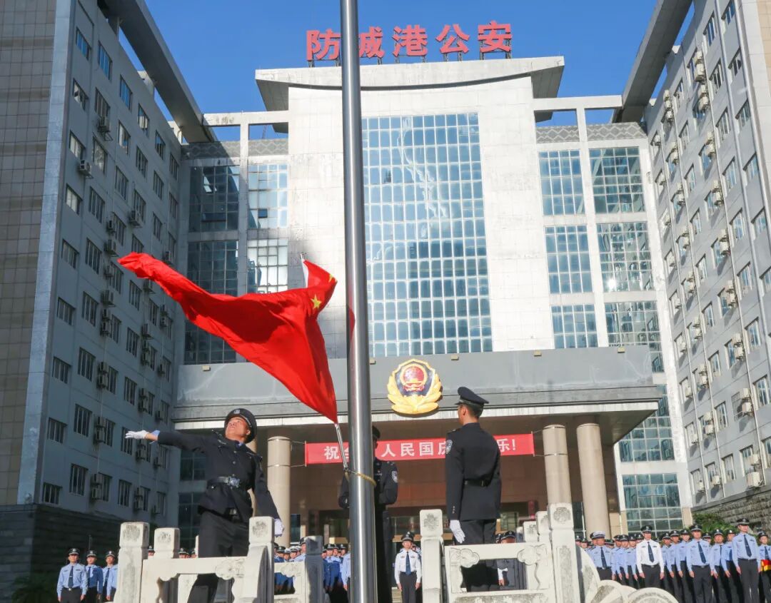 朝阳映警徽 国旗耀港城|防城港市公安局隆重举行国庆升旗仪式