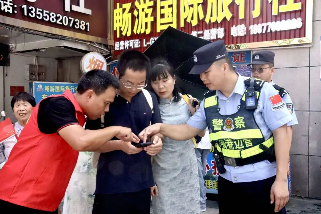 在巡逻间隙,民辅警化身 “安全宣传员”,把防护知识送到群众身边。在景区广场、口岸街区,他们手持安全手册,向游客讲解反诈、防走失、防溺水技巧;针对老年游客,手把手演示 “国家反诈中心” APP 安装步骤,耐心叮嘱防范电信诈骗要点;对带娃家庭,重点提醒假期看护注意事项。此外,还联合通信运营商发送安全提示短信,让安全知识深入人心,帮助游客群众把 “安全防线” 筑牢。