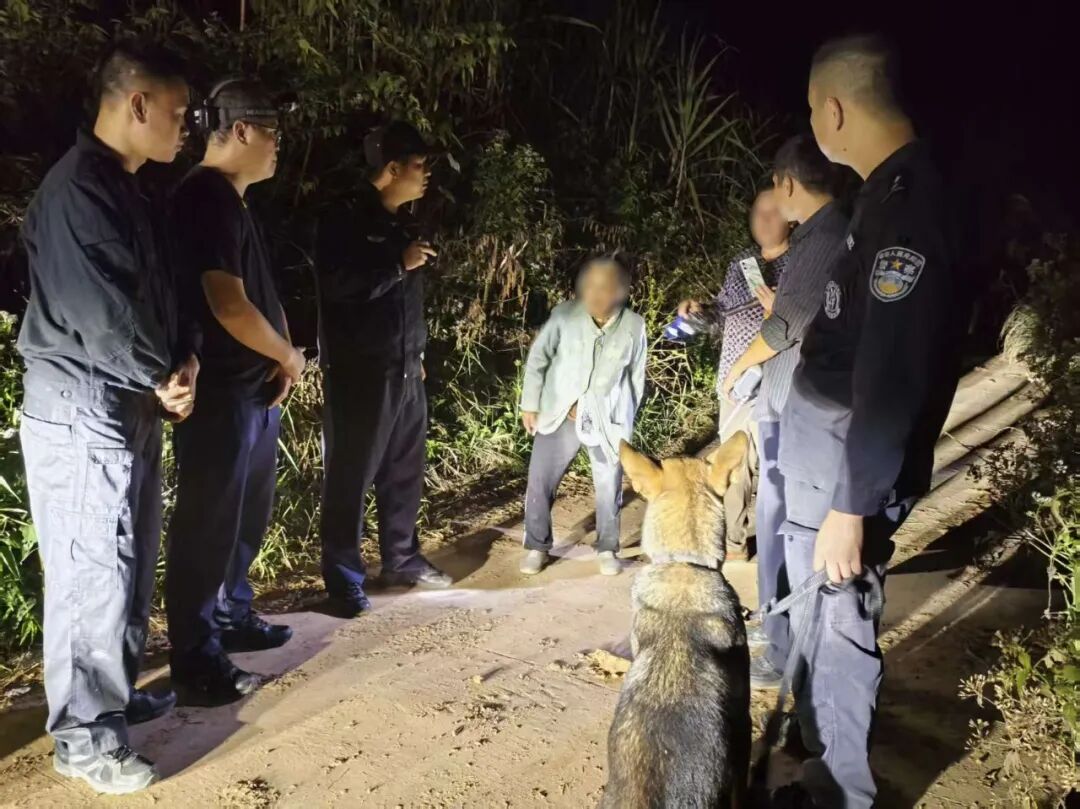 很快,支援人员携无人机、警犬“多米”抵达救援区域,与派出所民警分工协作投入搜救工作。“起飞!”随着指令下达,搭载热成像摄像头的无人机迅速升空,在夜色中凭借温度差异精准捕捉生命体信号。另一边,嗅觉灵敏的警犬“多米”循着老人留下的气味,在草丛中穿梭前行,稳稳锁定了大致搜救方向。