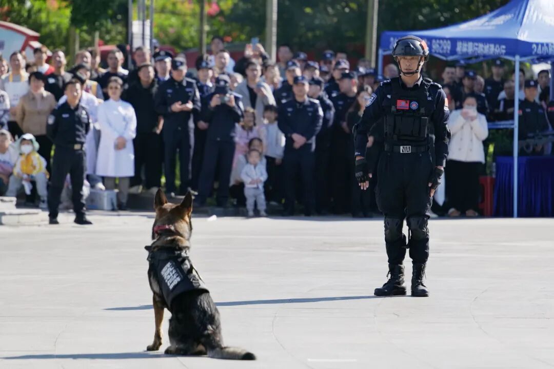 作为反恐战线上一支不可或缺的尖兵力量,训练有素的警犬在训导员指令下,完成精准搜捕、飞跃火圈等高难度任务。
