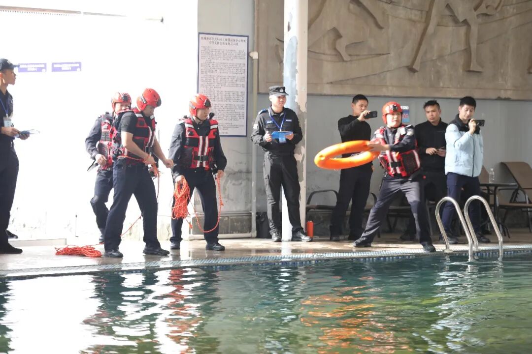 水域救援赛场,师徒携手运用救生装备,以科学施救方法完成救助任务,应急处置能力突出。