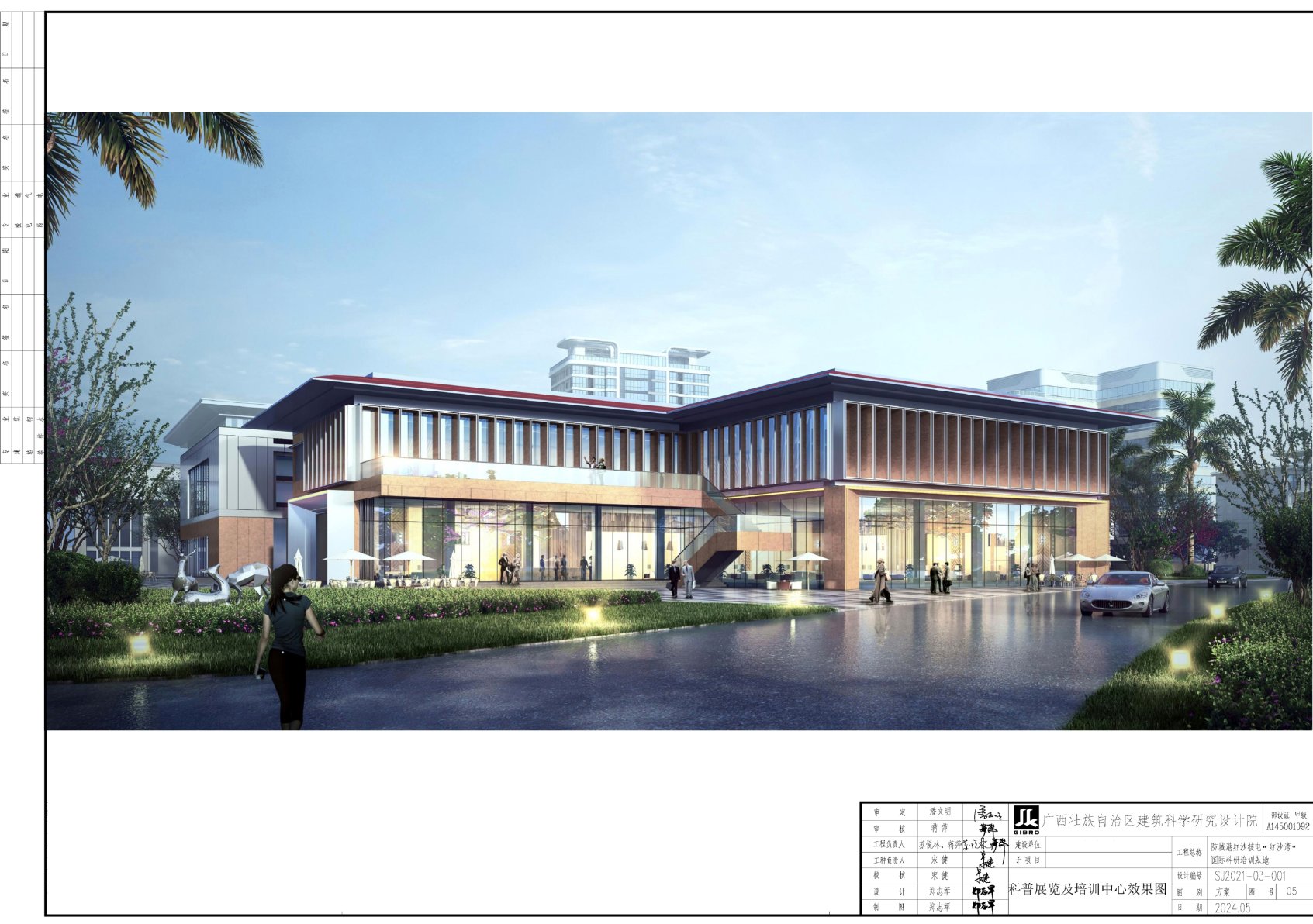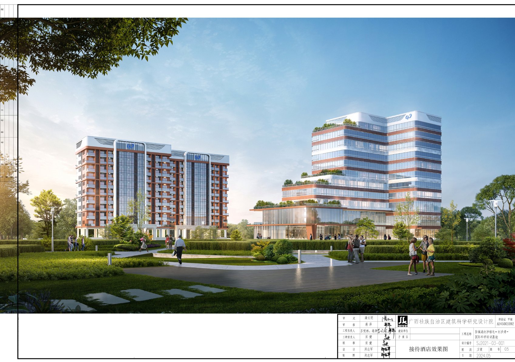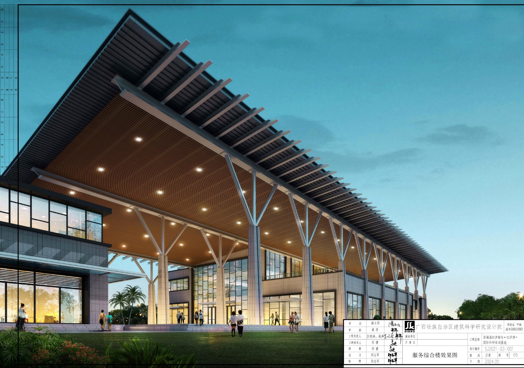 (二)建设方案:由广西壮族自治区建筑科学研究设计院编制的防城港“红沙湾”国际科研培训基地规划建筑设计方案。