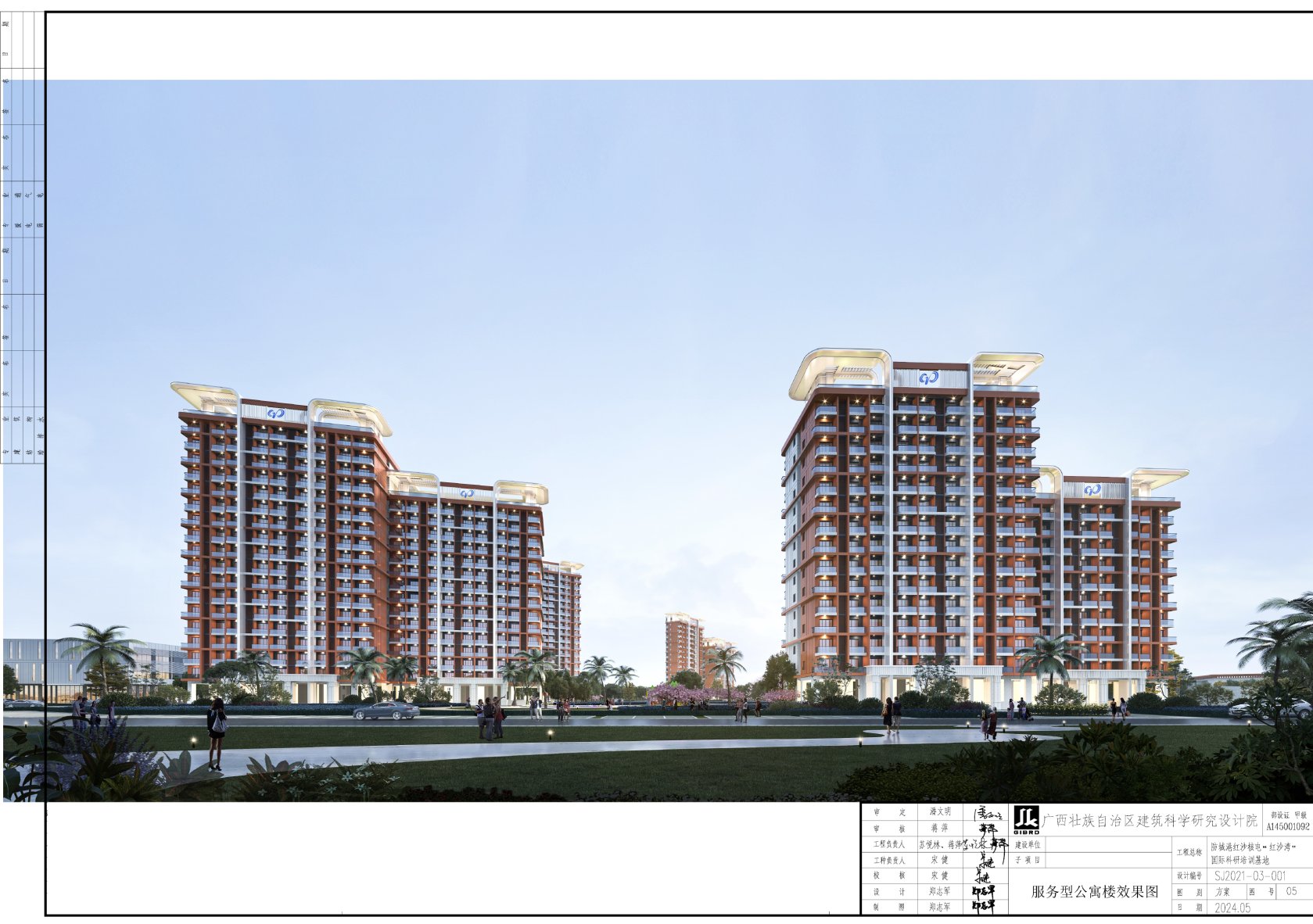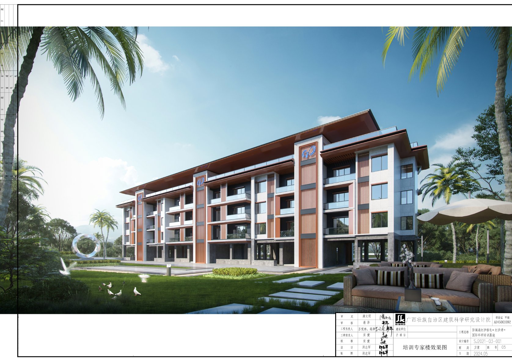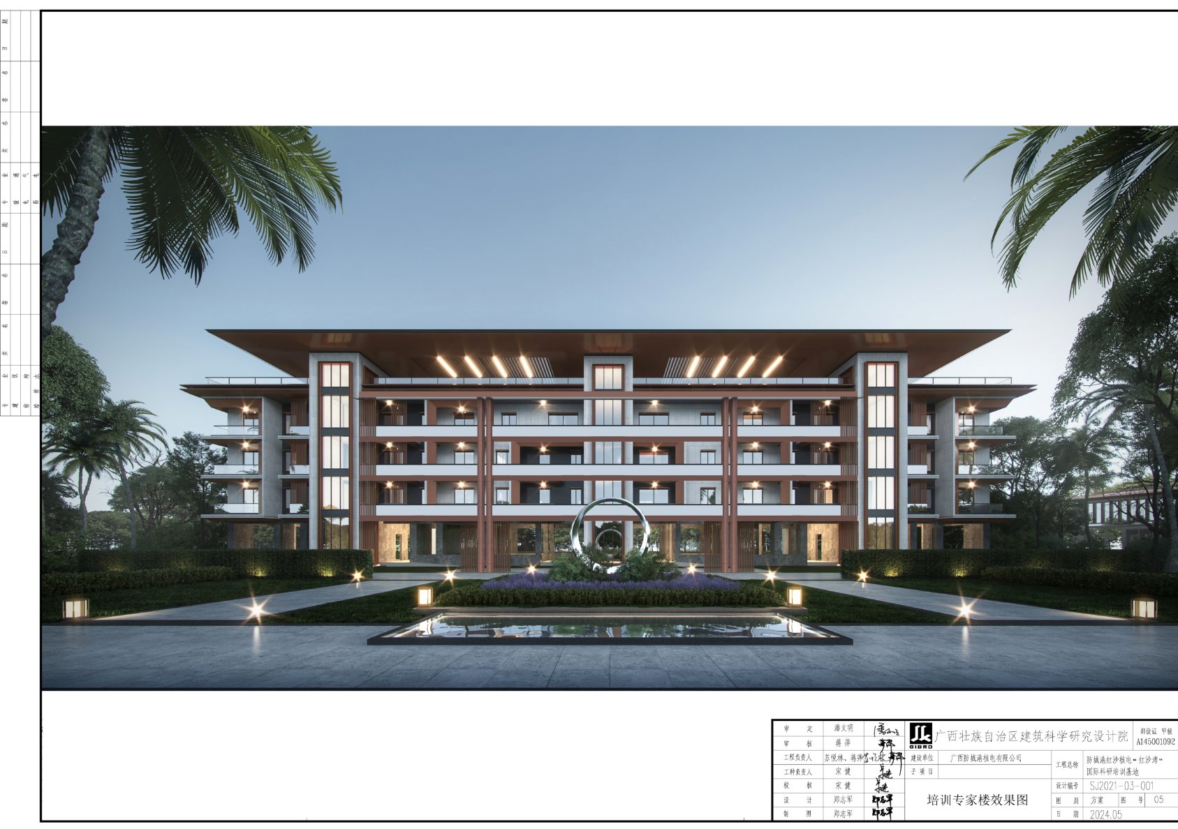 (二)建设方案:由广西壮族自治区建筑科学研究设计院编制的防城港“红沙湾”国际科研培训基地规划建筑设计方案。