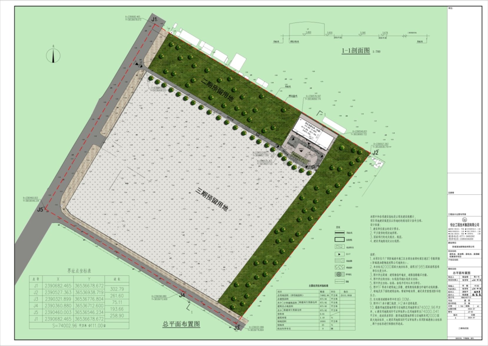 (一) 批准规划设计条件(地字第450601201700032号):地块总用地面积74002.96㎡,净用地面积66234.96㎡,用地性质为物流仓储用地,建设规模:≤99352.44㎡,容积率:≤1.5,建筑密度:≤35% ,绿地率:≥25%,建筑限高 :≤25m,配备车位:按规范设置。