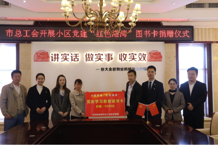 活动中,市总工会党支部向恒大御景湾小区党支部捐赠了价值5000元的小区党建“红色港湾”图书卡,极大地丰富恒大御景湾小区书屋的藏书量。