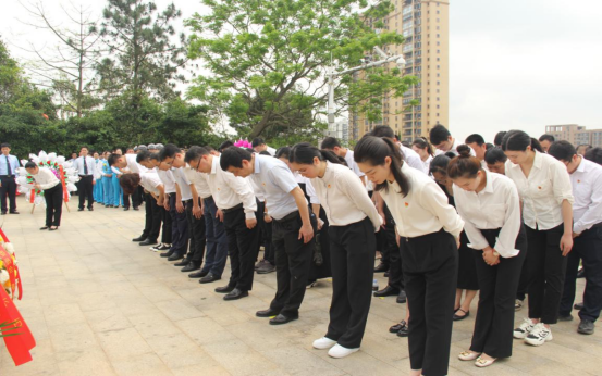 活动在庄严的国歌声中拉开序幕。在防城城北烈士陵园纪念碑前,全体人员肃穆而立,向革命烈士敬献花篮,默哀鞠躬,绕行瞻仰烈士纪念碑,为英烈墓碑敬献花束,表达了对革命先烈的崇高敬仰和深切缅怀。