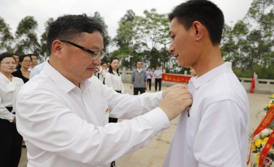活动中,市总工会党支部书记张健、市海洋局党支部书记林坤强、医学试验区工作办党组成员林丽锋、广投北部湾海风公司党支部组织委员兼宣传委员冯健为本单位新入党同志佩戴党员徽章。
