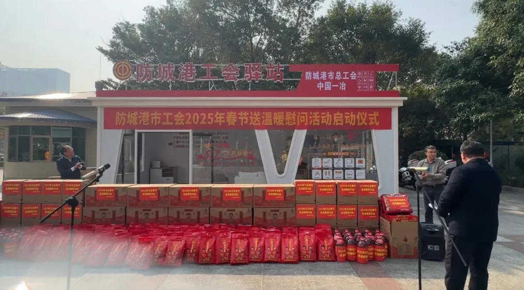 防城港市总工会举行工会驿站揭牌暨2025年春节送温暖慰问活动启动仪式