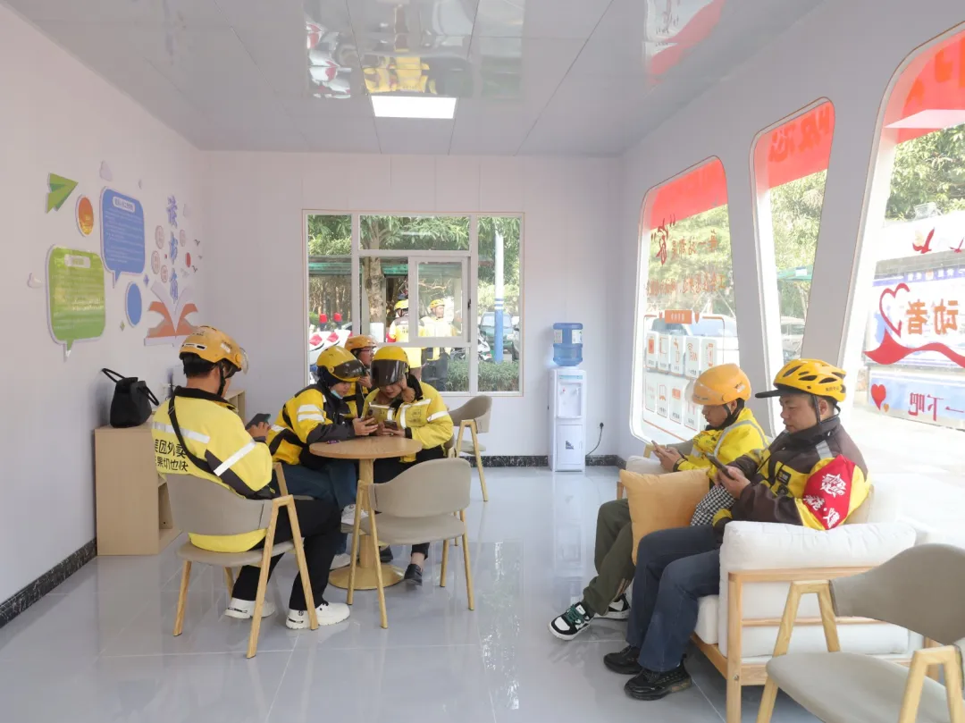 近年来,防城港市总工会坚持以人为本,积极推动工会驿站建设,全市共建成并投入使用工会驿站30个,其中,延伸8小时之外服务的工会驿站6个。防城港工会驿站(北部湾海洋文化公园站)的建成,将为职工群众特别是新就业形态劳动者等户外劳动者提供休息歇脚、书刊阅读、免费WIFI、手机充电、热饭饮水、应急药箱、避暑取暖等服务,让职工群众在这里就能感受到“家”的温暖。