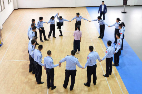 随后开展的趣味团建活动中,民辅警们开展系列协作游戏。“密码破译”环节,队员们紧盯扑克牌密码,在脑力风暴中锤炼快速反应与战术规划能力;“生日排序”考验无声默契,仅靠肢体信号完成信息传递,让“心有灵犀”成为团队标签;经典游戏“一圈到底”里,呼啦圈在队员间流畅穿梭,每一次弯腰、传递都是“协同作战”的生动注脚。虽仅用1副扑克牌、1个呼啦圈,却将“强化协作意识、提升团队凝聚力”的目标融入游戏,让“小活动”对接“大需求”——正如边境管控工作,唯有上下同欲、紧密配合,方能筑牢安全屏障。