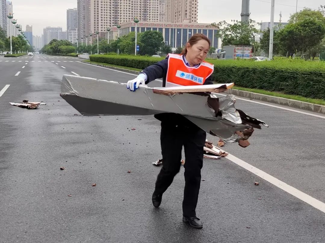 中心区片区作为我市行政中心,是我们城市的重要窗口。片区清扫面积大且任务重,保洁难度大。每年夏天台风天气,暴雨过后,大量的泥沙、淤泥堆积在道路上,影响行人和车辆的通行。我总是身先士卒,带领我组工人排沙清道,第一时间将路面沙、泥、垃圾全部清扫干净。秋冬季节树叶飘落,为了不让树叶到处乱飞,妨碍交通,我们环卫工人就提前清扫,经常从凌晨4点就开始工作。对于道路清扫保洁,我们始终以自己的实际行动,扮靓城市街道,为了城市的整洁始终战斗在一线。