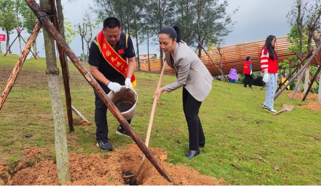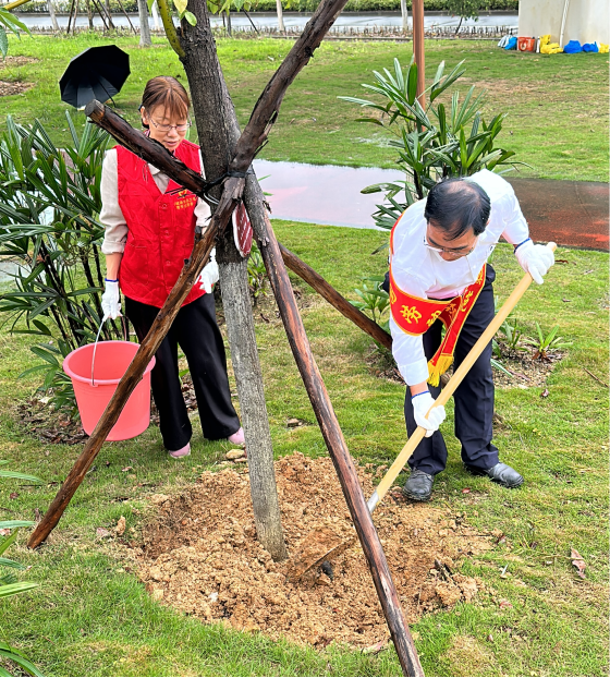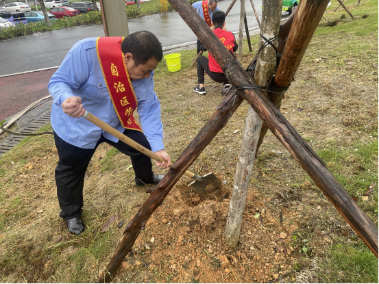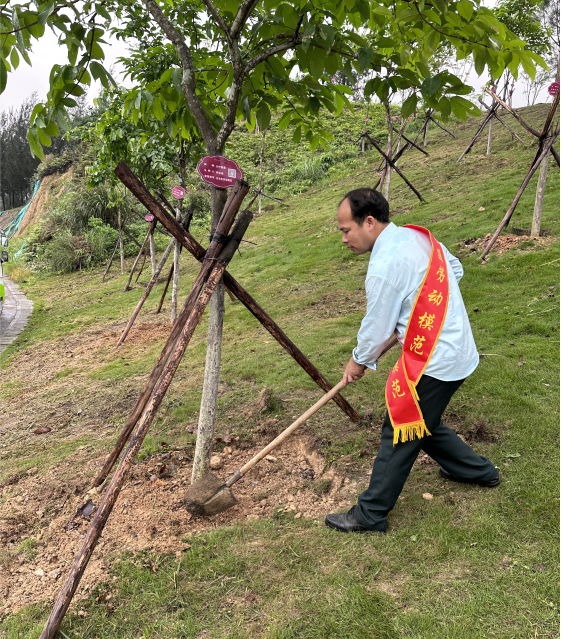 4月28日上午,在“五一”国际劳动节来临之际,防城港市总工会组织我市部分劳模来到市园博园的“劳模林”基地开展养护活动。在活动现场,劳模们精神抖擞、干劲十足,配合默契,大家挥铲除草、施肥培土,认真细致地做好苗木养护每道工序,精心呵护每一株苗木。