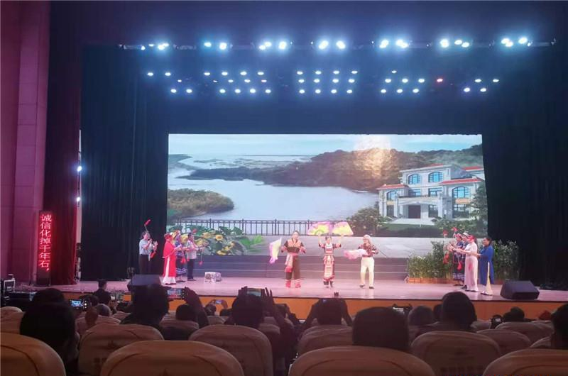 防城港市大型原创现代采茶剧《情暖北仑河》到钦州老年大学剧场演出时的现场。