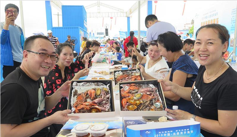 开海,自然少不了海鲜,只有新鲜的海产品才能满足八方宾客的味蕾,让游客嗨翻乐。8月16日,作为2019中国·北部湾开海节系列活动之一,趣味海鲜宴备受期待,防城港最具特色的生猛海鲜赢得宾客的一致好评。
