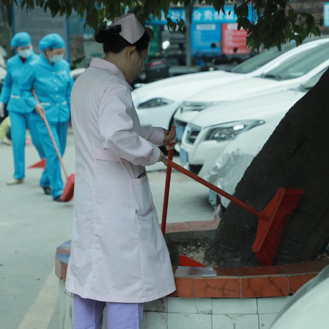 本次活动组织职工志愿者、保洁人员在院区内外进行大扫除行动,清扫地面、捡拾烟头纸屑,共建洁净就医环境。