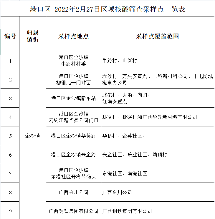 港口区2022年2月27日继续开展区域核酸筛查,为做到应检尽检、不漏一户、不落一人,现将有关事项通告如下: