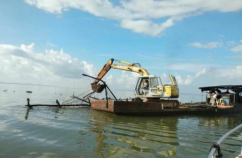 9月19日,中国海监广西北仑河口国家级自然保护区支队继续清除交东-班埃海域蚝架,共清除1.8亩。