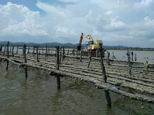 9月22日, 中国海监广西北仑河口国家级自然保护区支队联合东兴市国土海洋局,继续清除交东-班埃海域的蚝架,当日共清除蚝架约70米,面积约3亩。