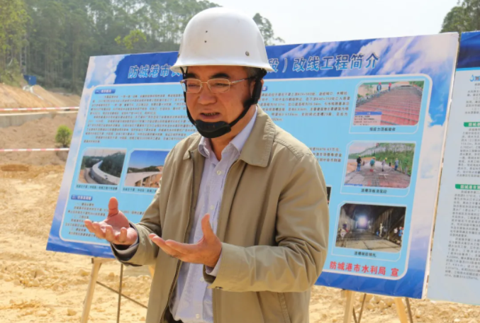 杨焱首先考察了长歧左干渠(中铝段)改线工程建设情况,了解我市重要水源工程布局,听取编制防城港市水利“十四五”规划发展情况汇报。