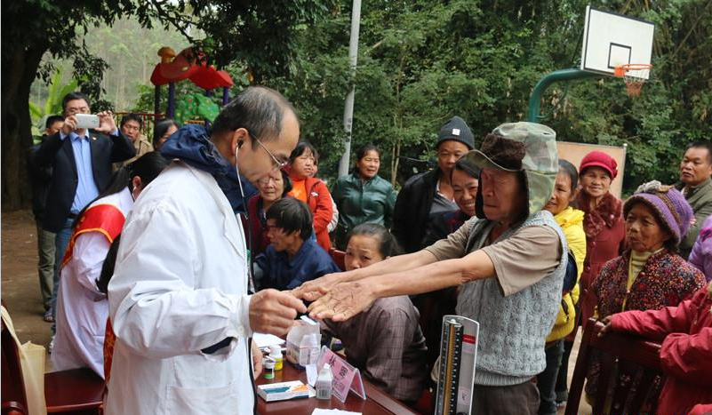 12月27日,防城港市直机关工委组织多家单位到上思县南屏瑶族乡巴乃村联合开展扶贫义诊主题党日活动,把健康和温暖送到上思县偏远乡村的群众身边。