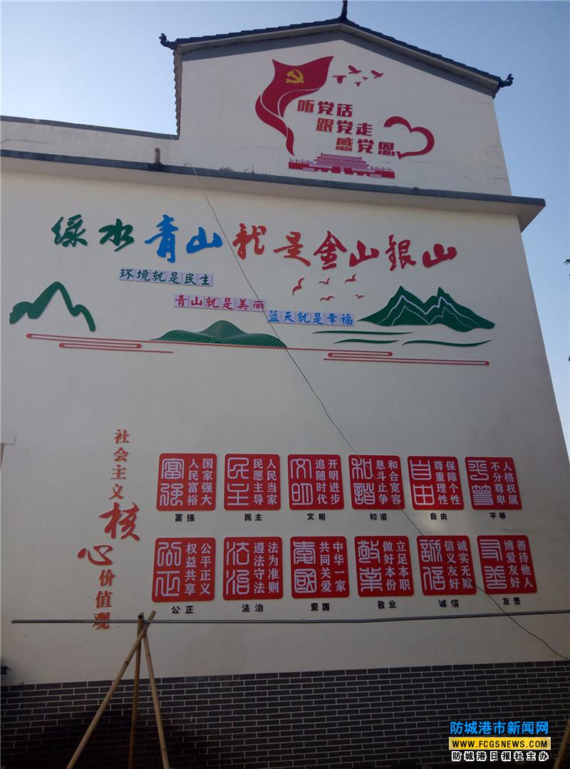 在“石江春晓”旅游景区,原来的油菜花田已被平整,村里新增了外墙体彩绘(如上图)、家训展示,以及在各个显眼位置摆放的“党建引领”展示牌,让这个小村落散发出浓浓的主题色彩。