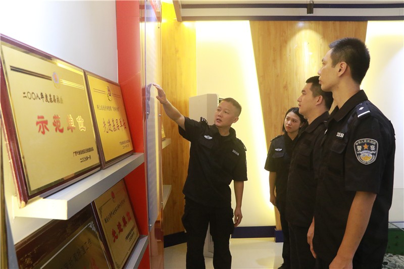 9月3日是中国人民抗日战争暨世界反法西斯战争胜利75周年纪念日。防城边境派出所组织开展主题党日活动,组织该所民警、辅警共同观看纪念中国人民抗日战争暨世界反法西斯战争胜利75周年向抗战烈士敬献花篮仪式。随着仪式进行,民警、辅警一起肃立默哀,向抗战烈士致以深切缅怀和崇高敬意。图为仪式结束后,该所民警、辅警还一同走进该所警史馆,共同回顾了该所发展历程,铭记历史,缅怀先烈,进一步坚定干事创业的决心。 黄 翔 摄