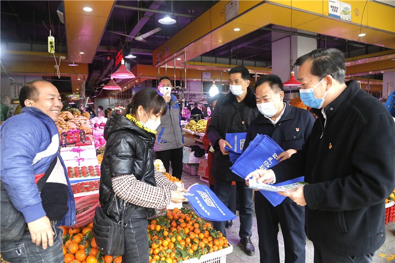 近日,市市场监管局机关党委和市兴港市场开发服务有限公司党支部,组织党员干部职工来到港口区紫金城市场开展垃圾分类宣传活动,向个体工商户和消费者发放垃圾分类宣传资料。 廖开军 摄