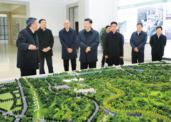 2019年1月16日至18日,中共中央总书记、国家主席、中央军委主席习近平在京津冀考察,主持召开京津冀协同发展座谈会并发表重要讲话。这是1月18日上午,习近平在北京城市副中心市委办公楼主楼详细了解副中心重大工程项目规划建设情况。 新华社记者 鞠鹏/摄