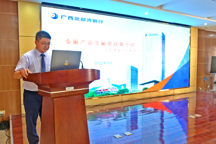 随后,北部湾银行防城港分行、防城港市区农村信用合作联社、工商银行防城港分行和桂林银行防城港分行分别作融资优惠政策及相关产品介绍。